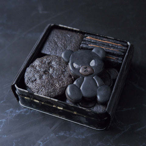 BLVCK PARISが贈る、ラグジュアリーで遊び心あふれるチョコレートクッキー缶。職人が一枚一枚丁寧に手描きした、まるでアニメのワンシーンのような愛らしいテディベアのアイシングクッキーを主役に、4種類の贅沢なクッキーを詰め合わせました。